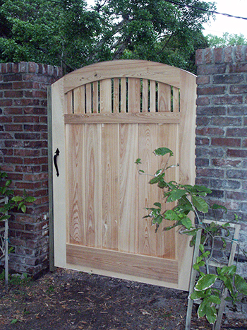 These custom made gates (by us!) leads to the backyard path.